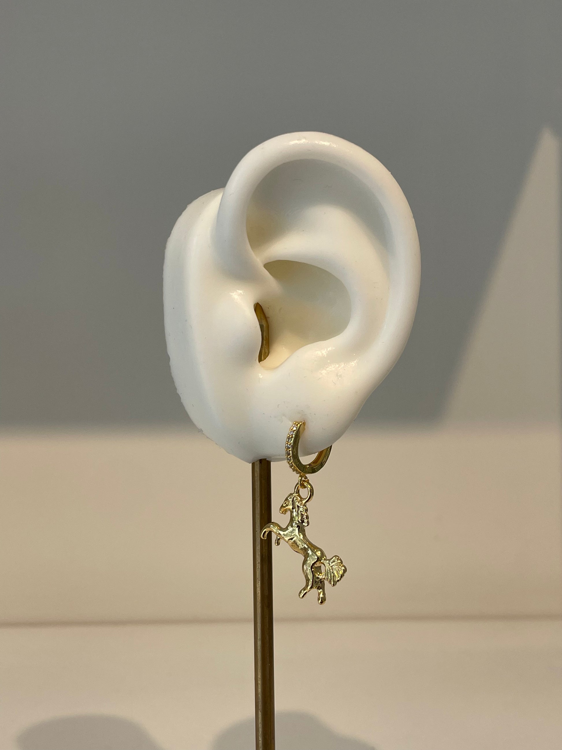 Bajo pedido 8 a 14 días hábiles Hecho en taller,Huggies con dije de caballo de Chapa de oro 18k.